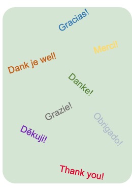 Danke! Thank you! Obrigado! Merci! Dank U!